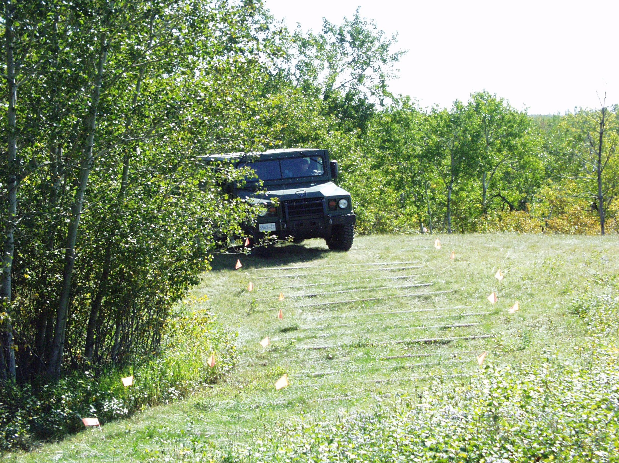 PAMI’s closed loop course is characterized by grades of up to 29%. It consists of rough, dirt bush trails covered by prairie soil, clay and grass. Operating speeds of up to 32km/hr can be attained. The average speed attained on this section provides totally random suspension inputs caused by driving over rocks that range in size up to 50 mm in diameter. the rocks are arranged in a rock bed to allow for rock shifting.